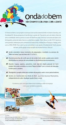 Este fim de semana será recheado de Oasis! Em Fortaleza, um grupo de jovens realiza o Onda do Bem, que promoverá um mutirão comunitário na comunidade Titanzinho, no bairro Serviluz.